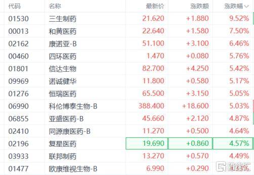 港股(gu)市场异(yi)样活跃,立异(yi)药概念全线飘红。截至发稿,三生(sheng)制药涨超9%,和黄医药、康诺亚、信达生(sheng)物(wu)、恒瑞医药、亚盛医药、四环医药等纷纷跟涨。